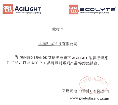 AgiLight(简称AGI)是美国重要的标识模组电器供应商,成立于2003年,总部位于新泽西,服务全球诸多重要市场的终端品牌及标识加工厂商。2015年10月,AGI收购了位于总部奥地利的锐高标识部门Tridonic Signage,进一步拓展了市场份额。